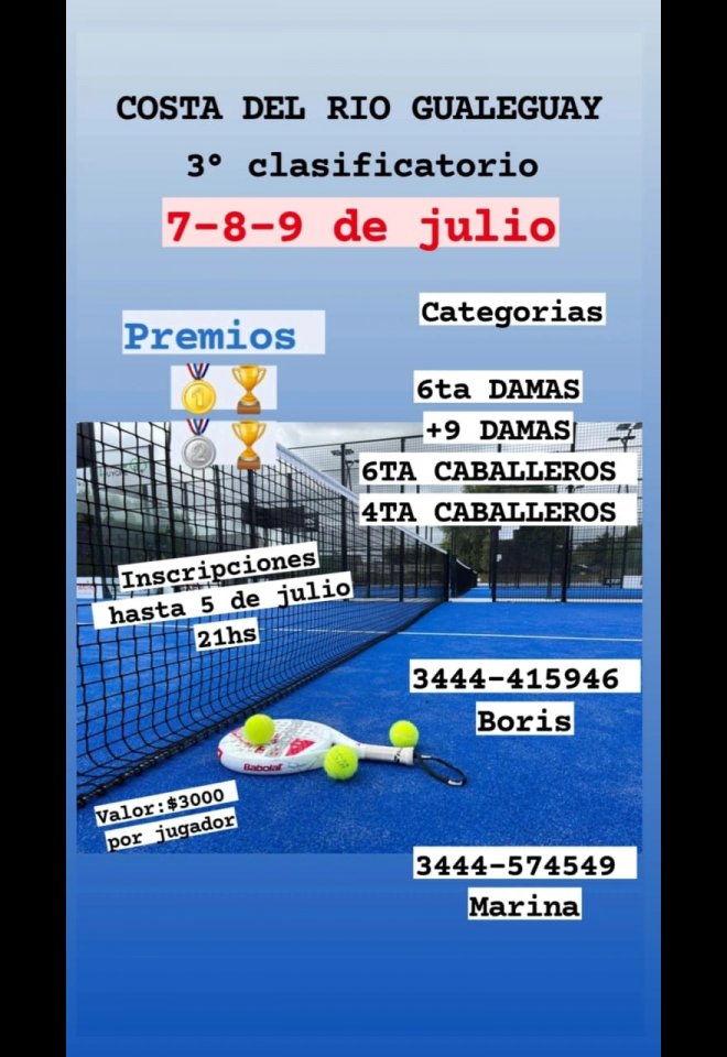 »» Evento: 3er Clasificatorio »» Localidad: Gualeguay »» Fechas: 07/07/2023 al 09/07/2023