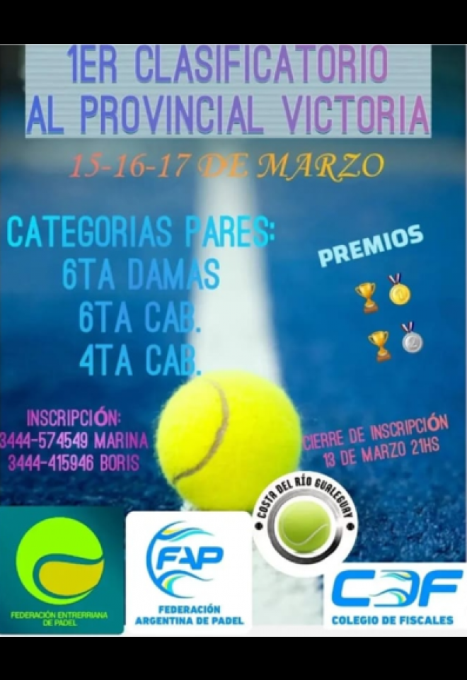 »» Evento: 1er Clasificatorio al Provincial AVP - PARES »» Localidad: Gualeguay »» Fechas: 22/03/2024 al 24/03/2024