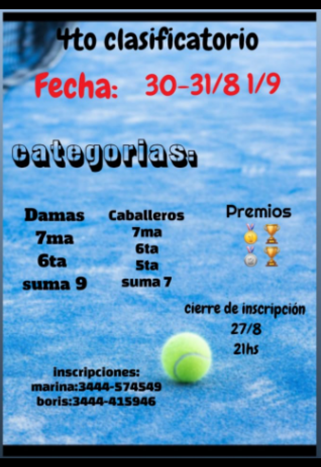 »» Evento: 4ta Clasificatorio »» Localidad: Gualeguay »» Fechas: 30/08/2024 al 01/09/2024