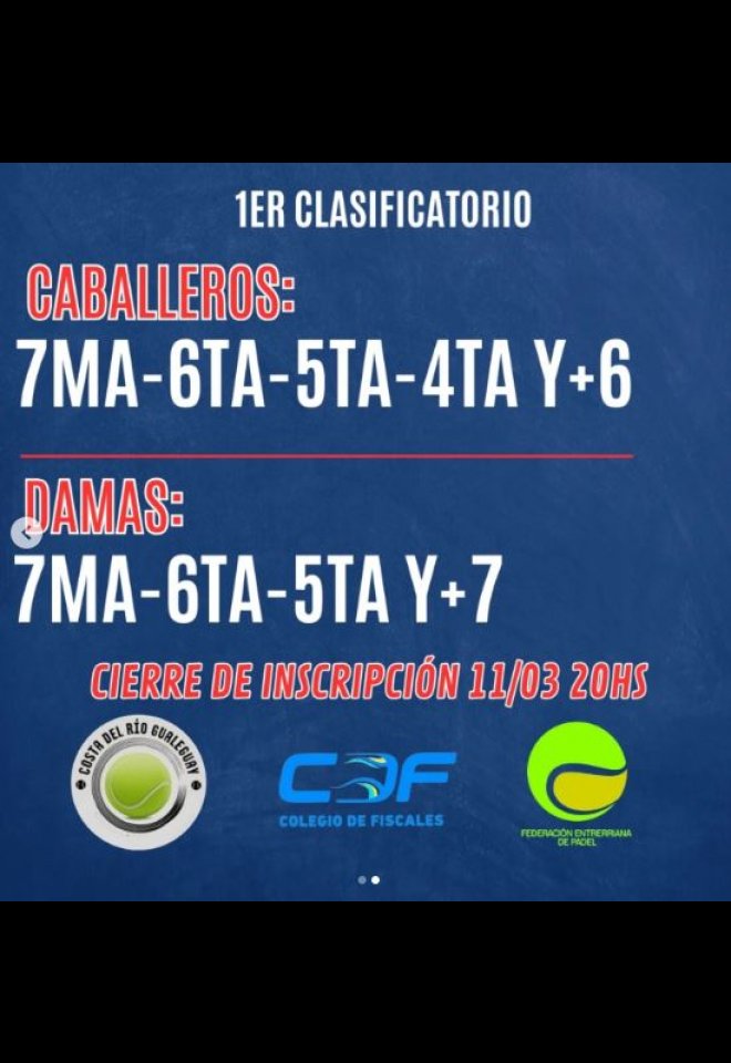 »» Evento: Clasificatorio 2025 - Etapa 1 »» Localidad: Gualeguay »» Fechas: 14/03/2025 al 16/03/2025